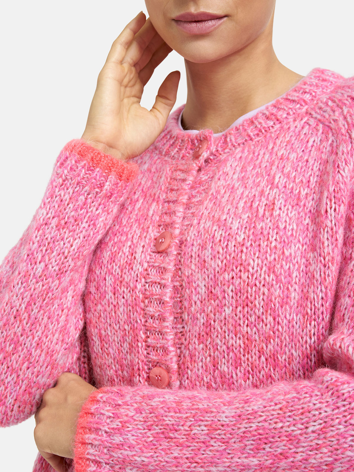 Gemütlichkeit trifft Stil! Diese mittelgrob gestrickte Strickjacke ist Ihr neues Must-have für kühle Tage. Der lockere Schnitt schenkt Bewegungsfreiheit, während die markanten Knöpfe charmante Akzente setzen. Ob über ein Kleid oder zur Jeans – sie passt sich jedem Look an. Ein Lieblingsstück für entspannte Stunden mit Stil. Lassen Sie sich einhüllen in Wärme und Lässigkeit!